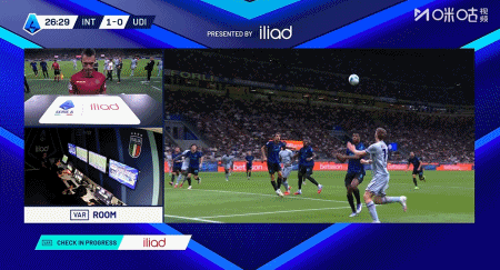 第29分钟,邓弗里斯手球送点,凯南-戴维斯点球命中,乌迪内斯1-1国米